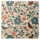 This lively Art Nouveau inspired design bursts with color, featuring elegant birds perched among lush floral blooms in rich reds, blues, and golds. Its intricate symmetry and botanical detailing evoke the timeless beauty of antique