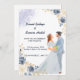 Belo convite ilustrado para o casamento. Ilustração de Aquarela pintada à mão. elegantes peonias embebidas impressas de casamento ilustradas com marinho de caligrafia azul, mão de casamento pintada de outono com flores desenhadas de botânico de folhagem verde.