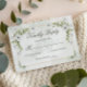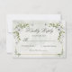 An elegant wedding RSVP card featuring soft white flowers, fresh greenery, and a delicate gold frame for a timeless romantic look. The airy botanical details and graceful typography create a refined design that is perfect for garden weddings, formal celebrations, and classic wedding stationery suites. A beautiful choice for couples who love soft floral wedding details with a polished and sophisticated feel. This version includes space for guest response and number attending, making it both lovely and practical.