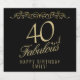 Elegante 40 e Fabulosa etiqueta de vinho espumante de aniversário de 40 anos de ornamento. 40 e um texto fabuloso em um roteiro de ouro e um ornamento elegante em fundo preto. Personalize-o com seu nome e sua idade, e faça rótulos de vinho elegantes personalizados para uma festa de aniversário.