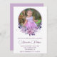 Elegante 4.º convite para o aniversário Foto Boho Vintagem roxa