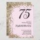 Este bonito e elegante convite de 75 anos é perfeito para uma bela festa e dará um tom elegante e comemorativo. Nota: A folha de alumínio é impressa e não é realmente brilhante! Este design apresenta um padrão impresso em ouro, rosa e preto, e é uma boa escolha minimalista para um evento especial para celebrar um aniversário de marco.