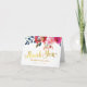 Elegantes cartões de agradecimento de casamento com um fundo branco clássico, exibição floral em aquarela, um título tipográfico em foil dourado falso elegante e um modelo de nota de agradecimento moderno.