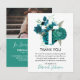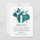 Um cartão de agradecimento de funeral extra especial para distribuir no serviço ou enviar a amigos e familiares que demonstraram amor e apoio durante o seu momento de luto. Apresenta uma cruz santa branca adornada com um lindo buquê de flores turquesa e folhagens, e uma nota de agradecimento que pode ser facilmente personalizada. No verso, você pode enviar uma foto de seu ente querido com o título 'em memória amorosa', o nome dele, anos de vida e uma homenagem personalizada. Isso também se torna uma lembrança maravilhosa.