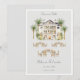 O anúncio de "salve a data" apresenta uma mansão rodeada por palme