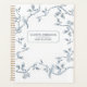 Planeador Personalizado Ilegante sem Datas com Aves Francesas Azuis e Brancas em galhos de árvores em fundo branco