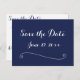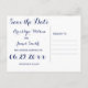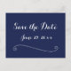 Marinho azul elegante Salve os cartões postais do casamento de data com texto branco alterável