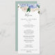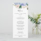 Este elegante cartão azul de janto de casamento branco de hydrangea é perfeito para um casamento de primavera ou verão. O clássico design floral apresenta faixas de cor azul-d-água de pó macio, acentuadas com flores cor-de-rosa e folhas verdes, cor-de-rosa e borrado neutro. Este menu pode ser usado para recepção de casamento, janto de ensaio ou qualquer evento.