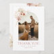 Este cartões de agradecimentos moderno de casamento boho apresenta uma foto arquivada. Florais e folhas em belos terraços e matizes rosa adicionam um toque único. O motivo floral continua no verso, que exibe outra foto, e tem espaço para o seu obrigado pessoal.