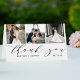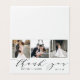 Este cartão de agradecimento elegante apresenta 3 fotos com "obrigado" em caligrafia, juntamente com os nomes do casal e a data do casamento.
