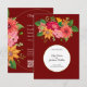 Celebre seu dia especial com este incrível RSVP de casamento floral, projetado para exuberar elegância e romance. O fundo burgundy profundo estabelece um tom rico e sofisticado, enquanto o vibrante arranjo floral pintado à mão no topo adiciona um toque de beleza natural. Um clássico quadro circular branco com uma sutil borda dourada destaca os detalhes do casamento, escrito em uma mistura refinada de letras de escrita e fontes serif. Perfeito para casamentos de outono, rústicos ou inspirados em vintage, este RSVP combina facilmente encanto de eterno com sofisticação moderna. F013