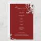 Mantenha seus convidados informados e bem informados com este elegante programa de casamento com uma cronologia detalhada. Parte do Burgundy Watercolor Floral Wedding Suite, este cartão inclui um design floral de cor aquática suave em burgundy e prata, com um layout estruturado para os detalhes da sua cerimônia e linha do tempo. Perfeito para traçar a ordem dos eventos, nomes de festas de casamento e momentos-chave. Totalmente personalizável para corresponder à sua visão do dia do casamento.