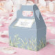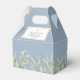 Elegante caixa de lembrança para primeira comunhão com folhas verde claras apresentando delicadas folhas em aquarela em um fundo azul poeirento, enquadrando sua mensagem de agradecimento em tipografia moderna. Você pode personalizar com sua própria mensagem de agradecimento no verso. Uma maneira perfeita de dizer obrigado aos seus convidados! Criado por Thisisnotme©