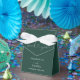 Elegante caixa de presente de casamento em verde esmeralda personalizada com seus nomes e data de casamento. Concebida por Thisisnotme©