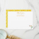 Um bonito cartão de agradecimento de chá de noiva com uma única flor de margarida e uma abelha pairando. "obrigado" está em fonte de caligrafia moderna amarela e um padrão de favo de mel aquarelado no verso.