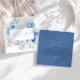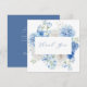 Este elegante cartão de agradecimento apresenta uma moldura floral em aquarela com belas flores em tons variados de azul, bem como uma caligrafia delicada.