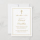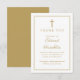 Um moderno e elegante cartão de agradecimento funeral com borda dourada para Celebração Cristã da Vida. Concebido por Thisisnotme©
