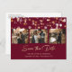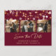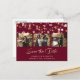 Elegantes cartões de salva datas de casamento personalizados em burgundy e dourado com fonte de letra moderna. Nosso salva datas de casamento apresenta uma colagem de fotos de 3 imagens contra um fundo burgundy adornado com luzes de corda. Personalize facilmente este cartão de salva datas com suas imagens e detalhes do casamento, incluindo um site de casamento, se desejar. Para pedidos personalizados, envie-nos uma mensagem.