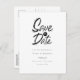 Este cartão de save the date minimalista apresenta um moderno save the date desenhado à mão acima dos seus detalhes em um texto elegante. O verso tem detalhes adicionais do save the date, incluindo o site do seu casamento, com o seu endereço de devolução e espaço para o endereço do destinatário.