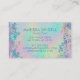 Bela arte iridescente com grandes formas de brilho e salpicos de aquarela roxos. Personalize com seu nome, tipo de negócios, seu título e seus detalhes de contato, mídia social e local. Perfeito para cabeleireiros, maquiadores, cosmetólogos e muito mais!