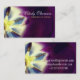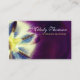 Cartão de visita elegante e único roxo com macro foto de uma tulipa roxa. Adorável para gerentes de eventos, salão de beleza, instrutores de yoga, profissionais criativos.