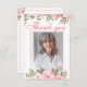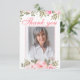 Expresse a sua gratidão aos entes queridos pelo seu apoio e gentileza durante um período difícil com este elegante cartões de agradecimentos floral. Apresentando um delicado arranjo floral cor-de-água rosa e uma foto personalizada, este cartão é perfeito para agradecer à família e aos amigos pela sua presença num serviço de memórias ou num funeral. Você pode personalizar o texto para incluir uma mensagem pessoal, datas e horários.