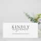 Elegante, Casamento, Sinal Reservado para Pressionar Presidências, fonte de script. Sentado Reservado para seu Dia Especial Torne sua cerimônia de casamento ainda mais pessoal e organizada com nossos cartões elegantes, modernos e minimalistas "Reservados". Perfeito para marcar assentos para a família da noiva ou do noivo, essas cartas são ideais tanto para cerimônias de igreja quanto para celebrações ao ar livre. Cada cartão é totalmente personalizável, permitindo que você adicione nomes, a data do casamento, ou até uma mensagem especial, fazer cada detalhe do seu grande dia exclusivamente o seu. Disponíveis em várias cores para combinar com o tema do seu casamento, esses cartões são projetados para combinar-se perfeitamente com qualquer estilo decorativo, acrescentando um toque sofisticado aos seus assentos. Como personalizar: Escolha a cor do seu cartão preferido para corresponder ao seu tema de casamento. Digite os nomes, a data ou a mensagem pessoal que você gostaria de imprimir no cartão. Colocar os cartões reservados nos bancos designados para assegurar uma cerimônia suave e especial. Celebre sua história de amor com atenção aos detalhes e elegância.