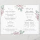 Programa tradicional de cerimônia de núpcias florais com caligrafia elegante. este design apresenta um programa de rosa poeira de cerimônia de núpcias, flores florais e botânicas minimalistas, tipografia de escrita de caligrafia mínima, letra moderna de escrita de caligrafia, cerimônia formal tradicional de igreja, guião de texto minimalista, programa de dobradura de folhagem, programa simples de lado duplo, modelo