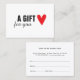 Cartão de presente elegante para profissionais de beleza ou moda. Design simples com ícone vermelho do coração.