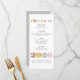 Adicione um toque de elegância moderna à celebração de Anos novos deste ano com este cartão de menu. A simples design apresenta alegria a 2024 numa tipografia moderna numa paleta de ouro e prata. O modelo é criado para uma refeição de quatro pratos. Personalize com seu nome de família. O reverso está em uma cor prateada coordenadora.