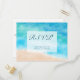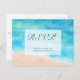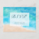 Um cartão-postal elegante de resposta de casamento com escolha de refeição apresentando uma pintura em aquarela de uma praia marítima ou oceânica. Uma encantadora escolha temática náutica para um casamento na praia ou recepção de praia.