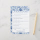 Jogo de chá de panela "Como você conhece a noiva" em um elegante padrão de antiguidade azul e branco. Todo o texto é totalmente personalizável para suas necessidades.