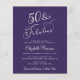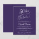 Convite de aniversário roxo 50º, elegante e econômico, com "50 & Fabuloso" e seu nome em scripts de caligrafia, e detalhes de seu partido em letras modernas e limpas. Uma versão de estoque de cartão 5X7 também está disponível (mensagem ou link).