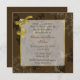 Convite de festa de aniversário de casamento personalizado e elegante, feito em tons de marrom e dourado. Gráficos com fundo marrom e bege, com floreios florais bonitos e borboletas e uma área de texto branca semi-transparente e dourada no meio. Gráficos realistas de um rebite dourado com um laço amarelo dourado decora o canto superior esquerdo da área de texto. O texto em tons de marrom é totalmente personalizável e pronto para ser personalizado para o seu evento de casamento. Convite encantador para casamentos, aniversários, festas de aniversário e muito mais.