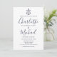 Elegante Convite de Casamento Âncora Náutica Azul
