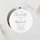 Com nomes elegantes em estilo de assinatura juntamente com sua foto especial, este convite de casamento circular cinza e branco pode ser personalizado com os detalhes do seu casamento em letras cinzas elegantes. Concebido por Thisisnotme©