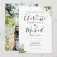 Com folhas verdes e nomes em estilo de assinatura, este convite de casamento elegante pode ser personalizado com suas informações em letras elegantes e sua foto especial no verso. Criado por Thisisnotme©