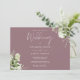 Este elegante convite de casamento com folhas de verde botânico e rosa mauve pode ser personalizado com suas informações em tipografia sofisticada e sua foto especial no verso. Criado por Thisisnotme©