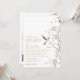 Este convite de casamento elegante com flores em chinoiserie dourada pode ser personalizado com suas informações em tipografia moderna e um código QR do site de casamento no verso. Projetado por Thisisnotme©