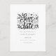 Este lindo cartão postal de anúncio de data com letra preta e branca apresenta folhas de louro e corações. Adicione os detalhes do seu anúncio especial em um texto clássico. O verso tem detalhes adicionais da data, incluindo o seu site de casamento, com o seu endereço de retorno e espaço para o endereço do destinatário.