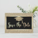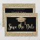Elegante tampo de formatura em glitter dourado sobre fundo preto.