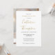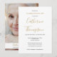 Um convite de celebração de vida personalizado com elegante escrita dourada e foto comemorativa. Criado por Thisisnotme©