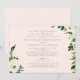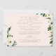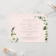 Convite de Casamento Elegante Rosa. Ambos os Conjuntos de Pais Listados. Fonte Mista. Folhagem e flores brancas. Texto Dourado. Casamento na Igreja. Impressão Maior.