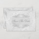 Cartões personalizados de Save The Date para casamento / convites. Elegantes e glamorosos cartões planos de Save The Date de casamento em papel de convite com damasco prateado e branco. Convites duplos modernos e contemporâneos, bonitos e chiques, impressos frente e verso, com uma placa de identificação com ornamentos clássicos e sofisticados sobre um fundo com um lindo padrão damasco. Todo o texto é totalmente personalizável para atender às suas necessidades e você pode alterar o estilo, a cor e o tamanho da fonte, se desejar. Tenho convites de casamento e outros produtos correspondentes na minha loja. Arte original©delightful-doodles.com. Se precisar de ajuda para personalizar seu produto, entre em contato comigo através da minha loja e ficarei feliz em ajudar. POR FAVOR, NOTE: Todos os convites no Zazzle têm imagens impressas planas.