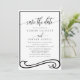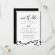 Anuncie seu casamento com estilo com este elegante cartão de 'save the date' preto e branco. Com uma fonte de letra clássica e um design moderno e limpo, este cartão é perfeito para definir o tom do seu grande dia. Personalize-o com seus nomes e detalhes do casamento para criar uma lembrança linda para seus convidados.