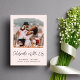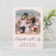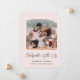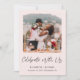 Convite de casamento ou fuga romântica elegante em tom de rosa claro e anúncio de casamento menor, ou convite para festa ou recepção pós-casamento. A frente apresenta sua fotografia, "Celebre Conosco" escrito em uma fonte elegante e seus primeiros nomes, data e local do casamento em uma tipografia moderna simples. No verso, personalize o anúncio do seu casamento ou fuga romântica com mais detalhes, adicione um convite para recepção ou festa e assine seus nomes de casados em uma fonte com estilo de assinatura.