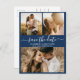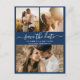 Orçamento Convite de casamento elegante moderno azul marinho e branco com colagem de 3 fotos para anúncio de save the date. Modelo de design minimalista chique com três (3) fotos de casal e tipografia elegante de letra cursiva manuscrita „Save the Date” em branco sobre fundo azul marinho. Se precisar de ajuda ou itens correspondentes, por favor entre em contato.