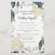 Areia Elegante de Creme e Flor de Água Azul A decoração de casamentos apresenta rosas brancas creme, margaridas e cravos com folhas e bagas azuis e verdes. Linda aquarela pintou fundo para um tema clássico clássico e sofisticado. Adorável para um verão, flor do jardim floral ou tema azul e branco.