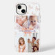 Elegante e fofo Amor Você Mon texto simples, elegante e elegante, com fita larga em bege claro com bordas roxas e padrão da mesma fita que o fundo em vermelho alaranjado, pêssego e tipografia azul e colagem de fotos da família. Perfeito para presente de Dia de as mães ou Aniversário. Personalize os nomes e suas melhores fotos.