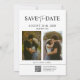 Este editável salvamento da data modelo é um moderno anúncio de casamento de fotos em preto e branco com tipografia minimalista, perfeito para casais que procuram um na moda e fácil de personalizar design.